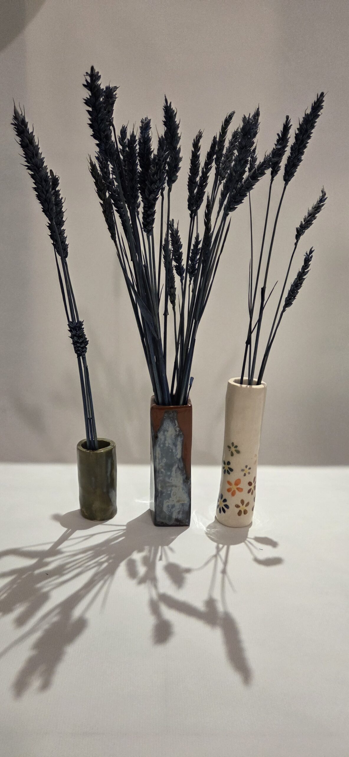 - Materiales florero 3: arcilla blanca con engobe y acuarela / arcilla marrón